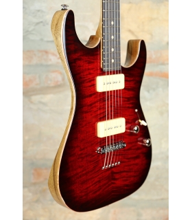 Suhr SUHR Custom Order Standard P90 - Black Limba Body with Curly Maple Top - Chili Pepper Red Burst
