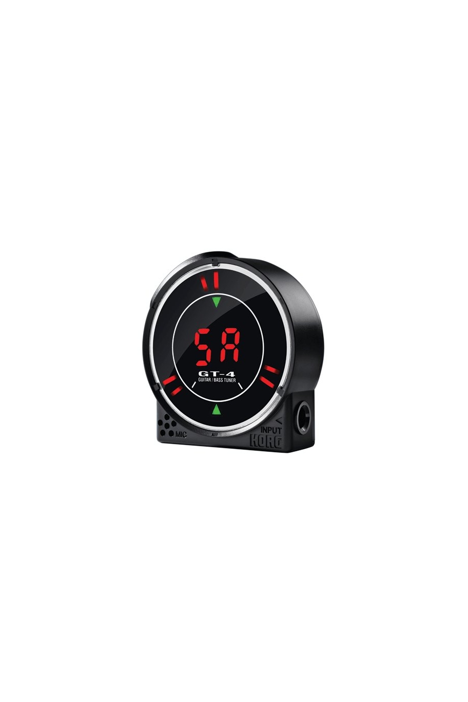 Accordatore per chitarra/basso elettrico - Nuovo design compatto e resistente, unico nel mercato - Innovativo LED circolare - Microfono a condensatore di alta qualità per accordare strumenti acustici - Modalità indicatore selezionabile:Strobe (default);Pointer type (selezionabile) per coloro che preferiscono accordare con il led meter - Range: GT-4 A0 (27.5Hz) - B6 (1975.54Hz) - Modalità di accordatura: GT-4 METER / STROBE GUITAR/BASS -Accuratezza di misurazione: +/- 1 cent - Connessioni: INPUT 1/4"