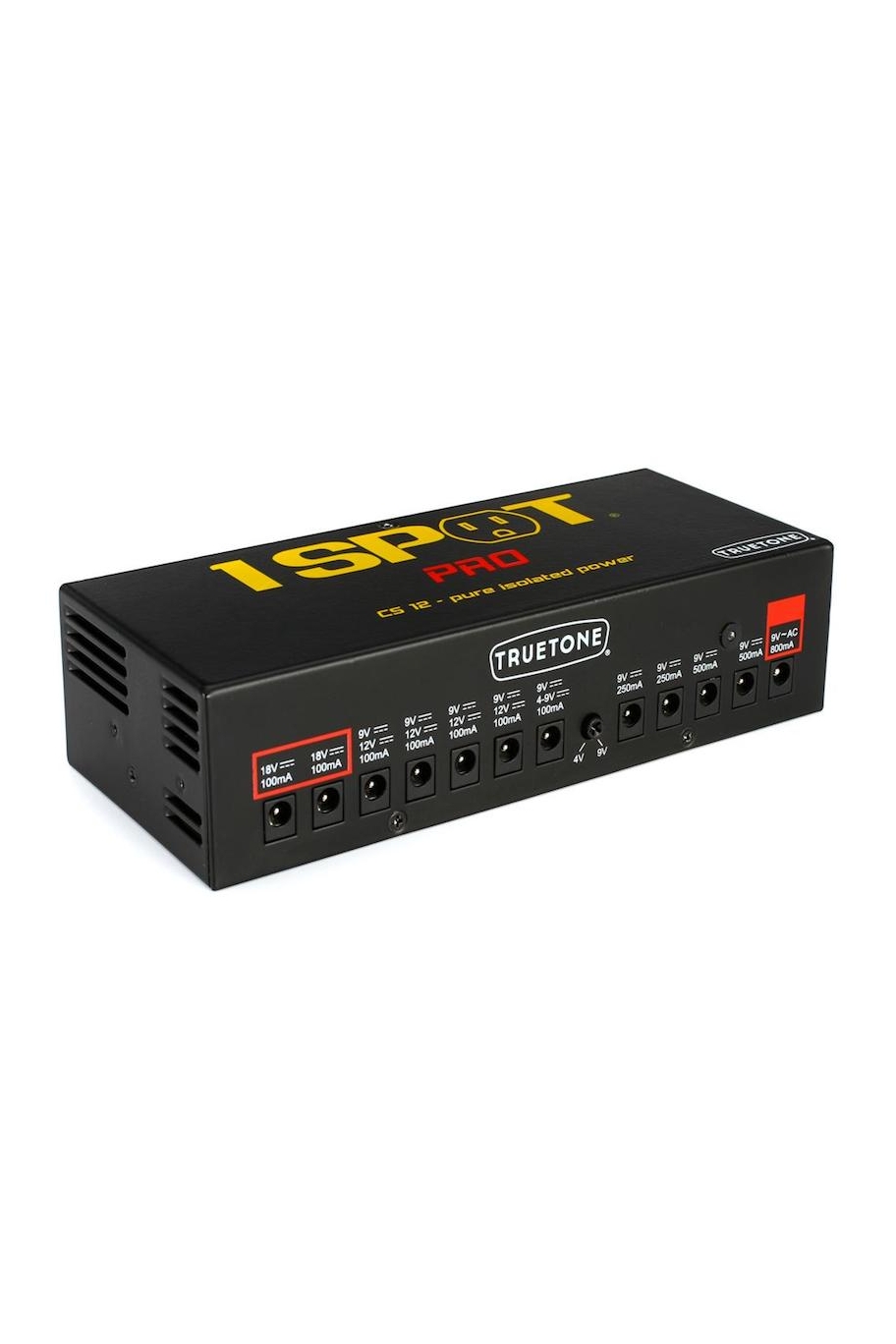 La corretta alimentazione degli effetti a pedale è spesso materia fraintesa o poco nota, ma è una conoscenza necessaria per ogni utente che desideri processare il suono attraverso gli effetti. Di fatto è la differenza che c'è tra la corretta funzionalità del pedale e i potenziali danni che gli si possono arrecare. Il 1 SPOT PRO ? CS12 è il primo alimentatore ad usare la tecnologia 1-Spot. Ha dodici uscite per alimentare praticamente qualsiasi effetto a pedale. Tutte le dodici uscite sono completamente isolate, regolate e filtrate per funzionare in modo silenzioso e sicuro con i vostri pedali. Le prime 11 uscite (da sinistra) hanno jack con un connettore standard a botte da 5,5×2,1mm, mentre l'uscita 12, che eroga 9V a 800mA, ha un connettore a botte più grande (da 5,5 x 2,5mm) per aiutare a prevenire la connessione accidentale dei normali pedali 9V ed il loro potenziale danneggiamento. Sul pannello inferiore dell'alimentatore ci sono 5 mini switch che permettono di cambiare il voltaggio delle uscite da 3 a 7 a cui fanno riferimento, selezionando 9V (switch in posizione OFF) o 12V (switch in posizione ON) a 100mA (per ogni uscita).