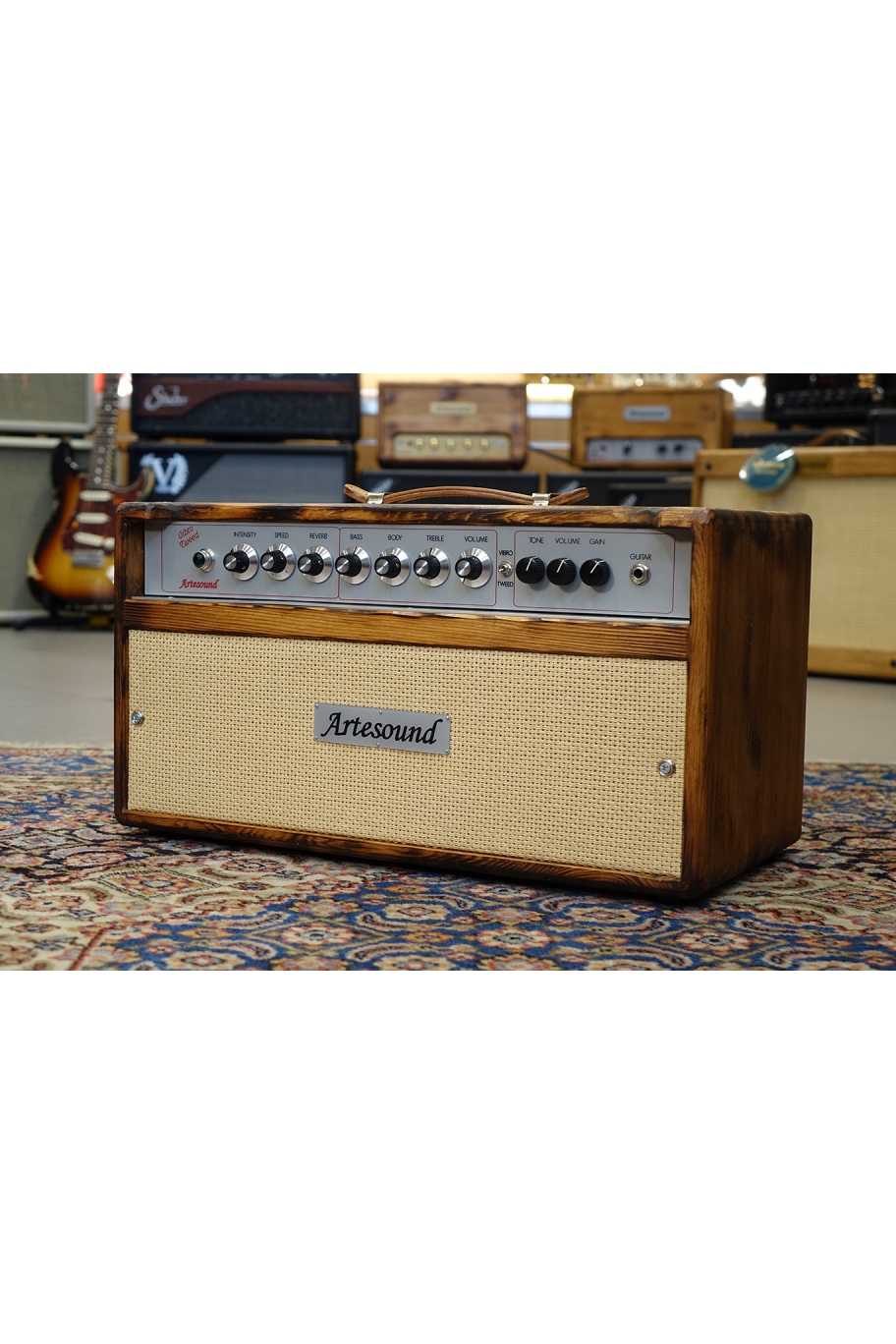 Il Vibrotweed è meticolosamente cablato a mano su eyelet board per offrire un suono di prim'ordine in ogni situazione, live o in studio.
