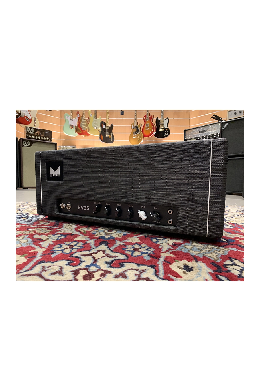 Like its brother the RCA35, the RV35 is the best in "big bottle" driven American style tones. From the factory it ships equipped with a pair of 5881's, but you can substitute 6V6, 6L6, KT66 and KT77 power tubes to change the overall character. When set for clean the tone is chimey and glassy reminiscent of a mid power blackface era Fender. When pushed the tone is fat while still maintaining great note definition. With the use of the master volume the amount of gain can be easily adjusted based on the application or desired volume. What sets the RV35 apart from the RCA35 is the addition of reverb to the circuit. The reverb is big and lush and accompanies the character of the amp perfectly.