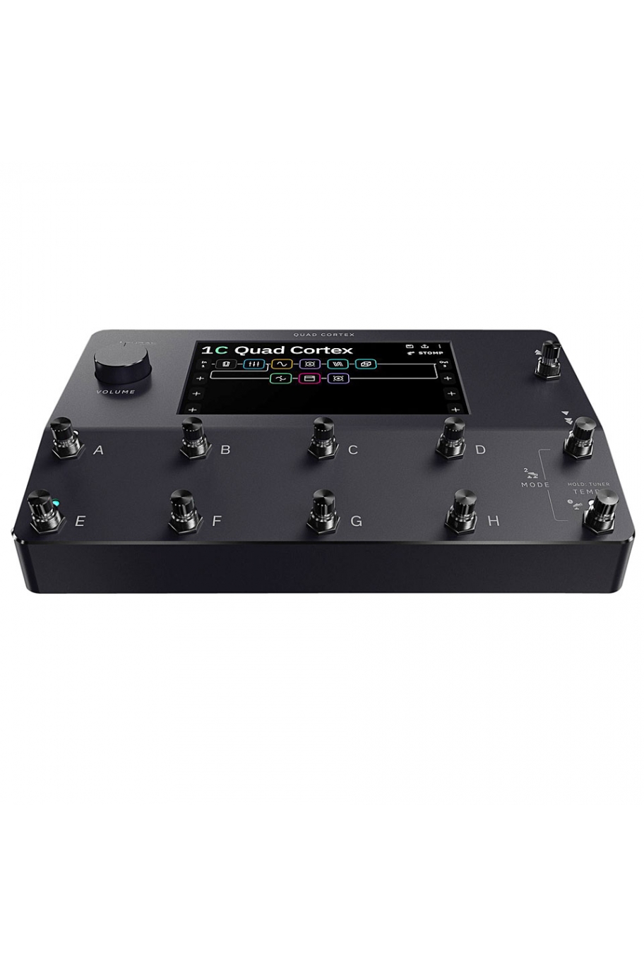 L'elegante layout del Quad Cortex è guidato da un touchscreen a colori da 7" e 11 footswitch che si ruotano e si premono per colmare il tweaking e la navigazione pratici dell'amplificatore con un semplice controllo a pedale. Quad Cortex offre anche ingressi e uscite configurabili, che possono essere salvate indipendentemente per ciascuno dei suoi 2 preset utente, insieme al MIDI e audio tramite USB per suoni registrati plug-and-play da producer.