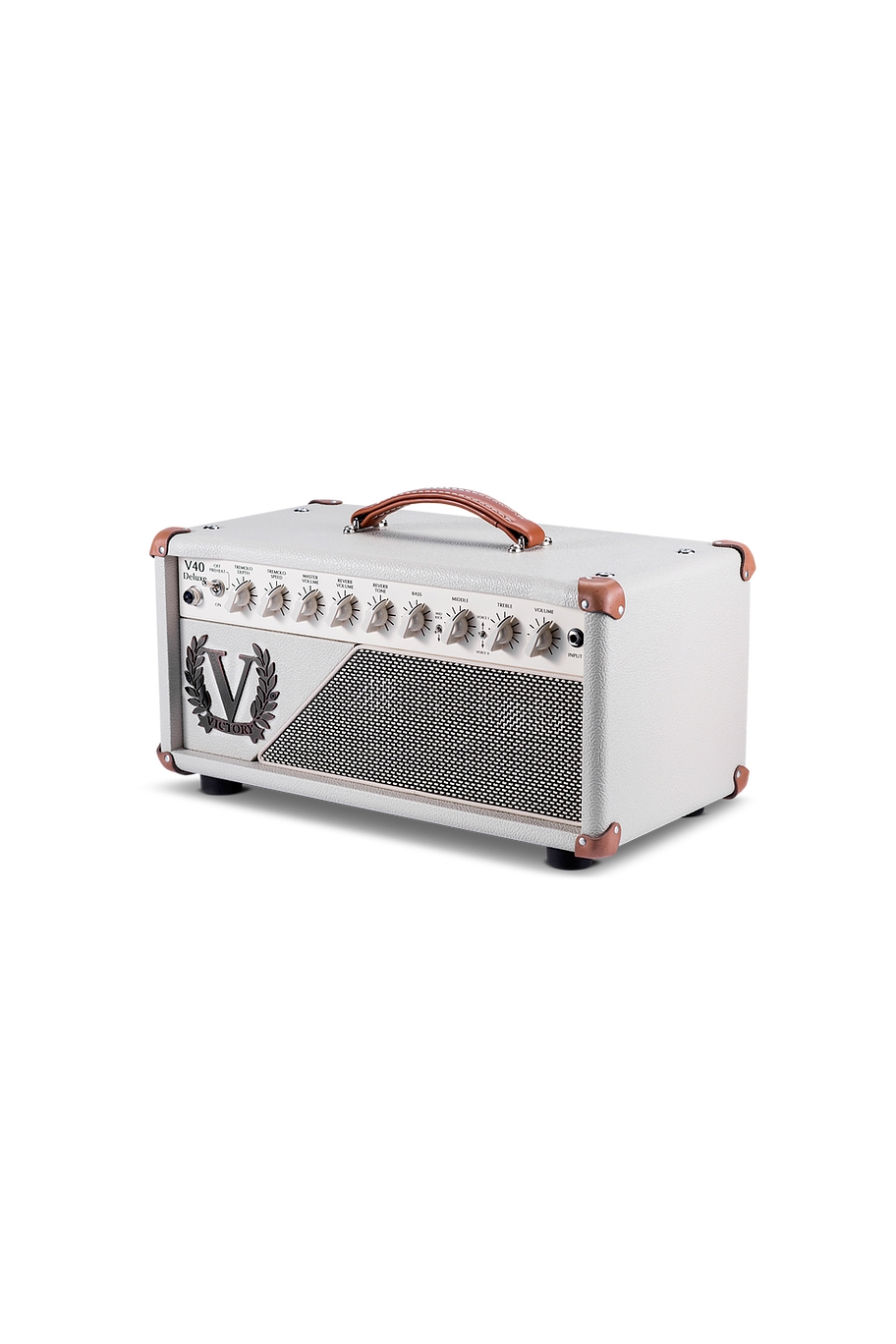 V40 Deluxe lives up to its name in stunning cream vinyl over traditional wooden cabinets with leather corners and handle for a modern-boutique look. You can expect classic American cleans through to pushed tweedy grit and on to driven British blues-rock. Choose between 1x12 combo or head & cab.