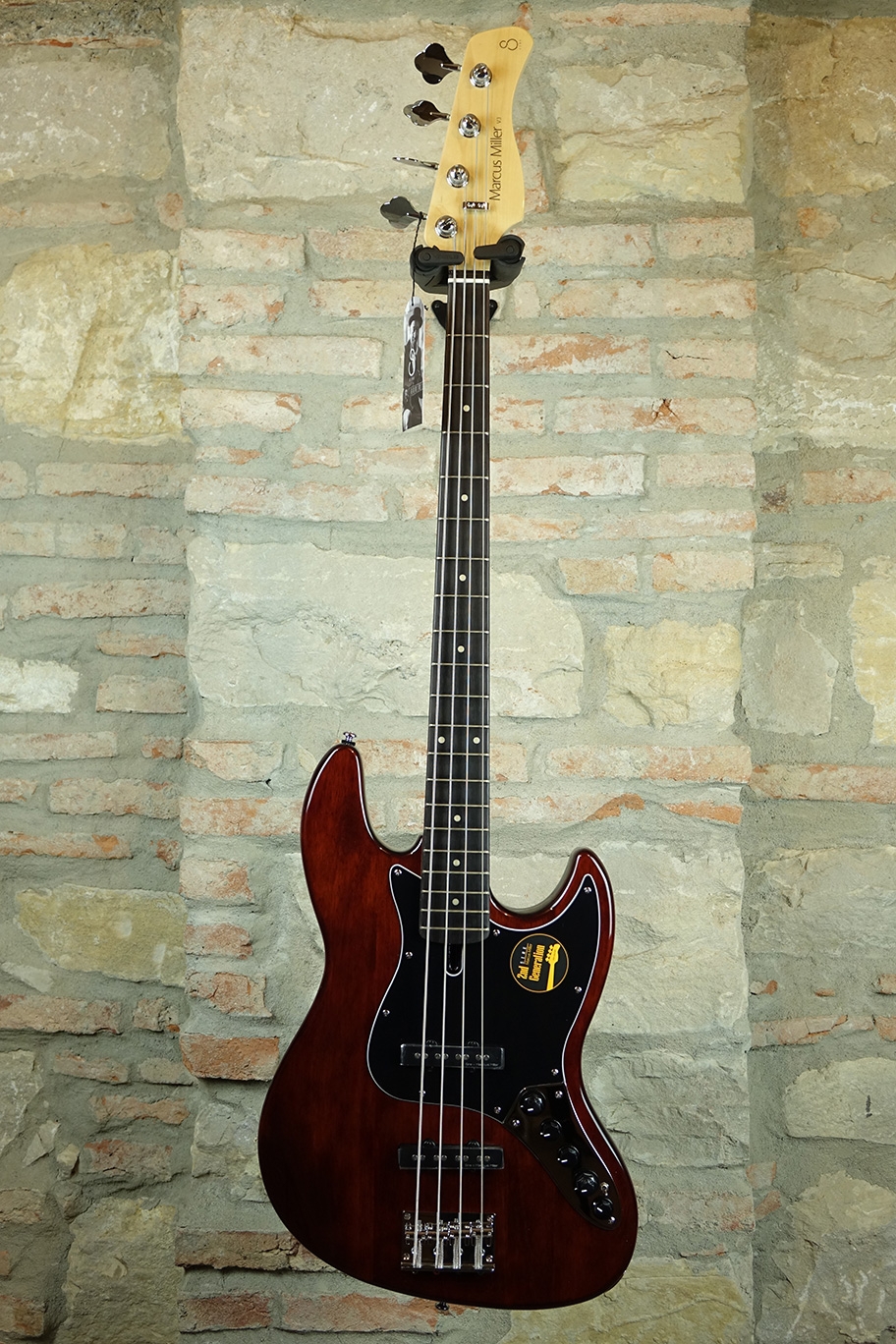 Basso Marcus Miller 2nd Gen. Body: Mogano. Formato: Nuovo Jazz Type Marcus Miller. Manico: Acero Canadese. Profilo manico: Profilo a C. Scala: 34’’. Tastiera: Palissandro con bordi arrotondati. Raggio, 9.5’’. Tasti: 20, Medium Small. Capotasto: Osso, 38mm. Intarsi: Dot madreperlati Bianchi. Giunzione manico: Piastra quadrata in acciaio a 4 bulloni. Pickup: Marcus Super-J Revolution. Elettronica: Marcus Heritage-3 con controllo delle medie frequenze. Controlli: Volume / Tone (Dual Pot) Pickup Blender Treble Medie / Medie frequenze (Dual Pot) Bass, Mini Toggle (Attivo / Passivo). Manopola: Jazz Type in plastica nera. Ponte: Marcus Miller Standard con fori Thru Hole. Meccaniche: Standard, Aperte. Hardware: Cromato. Battipenna: 3 Strati nero/bianco/nero. Finitura: Mahogany. "