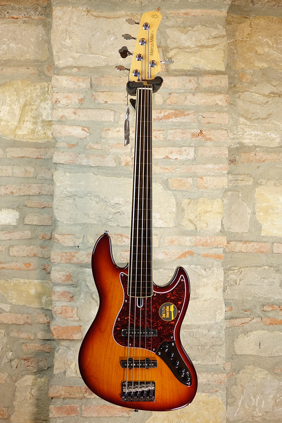 Basso Marcus Miller 2nd Gen. Fretless. Body: Ontano Nord Americano. Profilo del Body: Marcus Miller Jazz. Manico: Acero, Profilo a C. Tastiera: Palissandro. Raggio: 7.25’’. Capotasto: 38mm. Pickup: Marcus super Jazz. Elettronica: Marcus Heritage-3 con controllo della frequenza. Controlli: Volume / Tono (dual pot), Blender pickup, Treble, Middle / Middle Boost/Cut (dual pot), Bass, mini switch Attivo/Passivo. Battipenna: Tartarugato. Batterie: 2x 9V. Ponte: Marcus Big Mass. Hardware: Cromato. Finitura: Tobacco Sunburst. Pickup cover inclusa nella confezione (non installata).