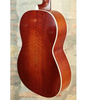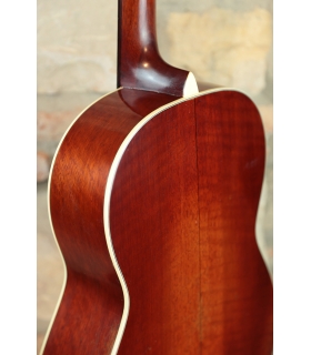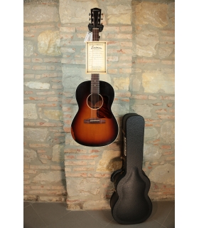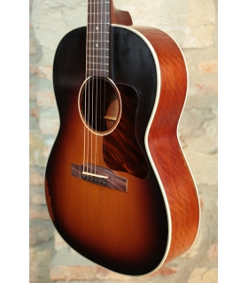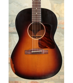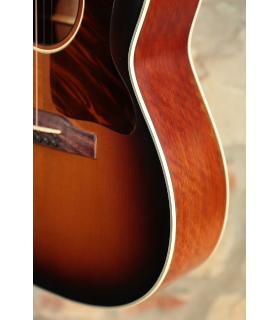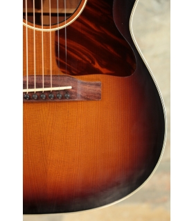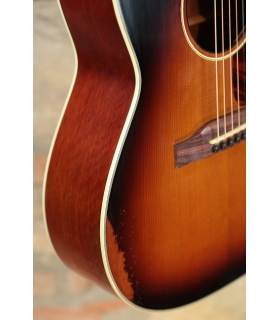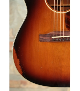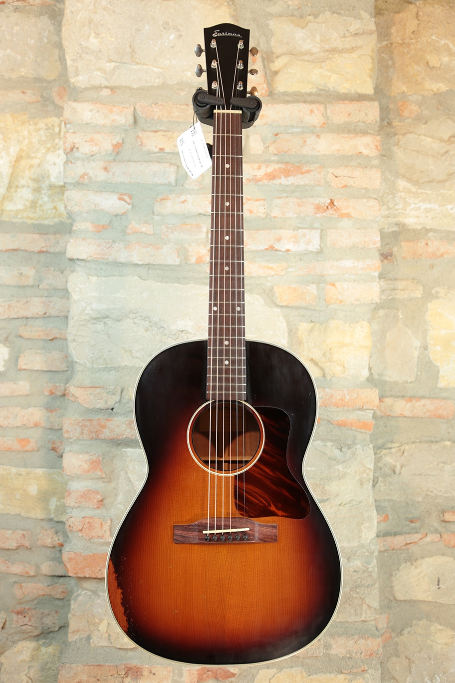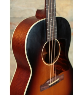 This Custom Eastman 00 is based on Gibson's LG2 / B25 shape and size, but thanks to the Thermo Cured Adirondack top, premium Mahogany back and sides, and Vintage Varnish finish, we feel that tonally this guitar has a richer, fuller, and cleaner voice and is more responsive than what you would expect from the Gibson, making it a much more versatile instrument. Excellent for finger style but can handle a flat pick quite nicely, it's an amazing 00. We added Vintage Varnish finish with a slight distressed look, with subtle gold burst to jazz up the look, and premium Gotoh tuners to make sure you stay in tune.