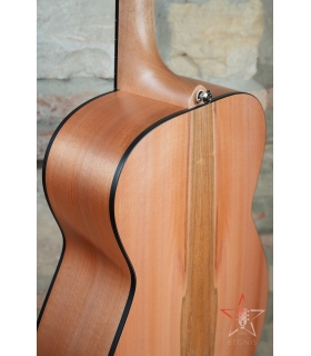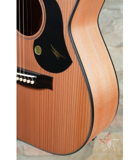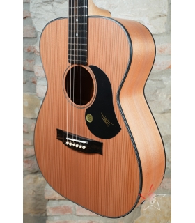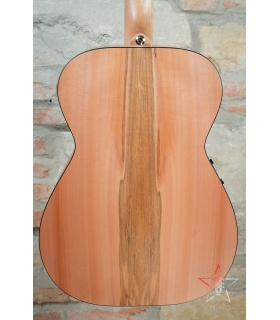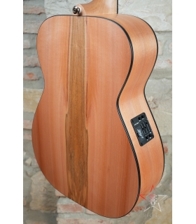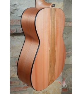 Tonally, Redwood can be compared to Western Red Cedar, but there is a stronger treble presence and dynamic response than typically found in Cedar. Tasmanian Myrtle (or Tassie Myrtle as we Aussies call it) has a smooth, Maple like tone, and when combined with Redwood seems to add a little extra warmth and sustain to the overall tone of the instrument.