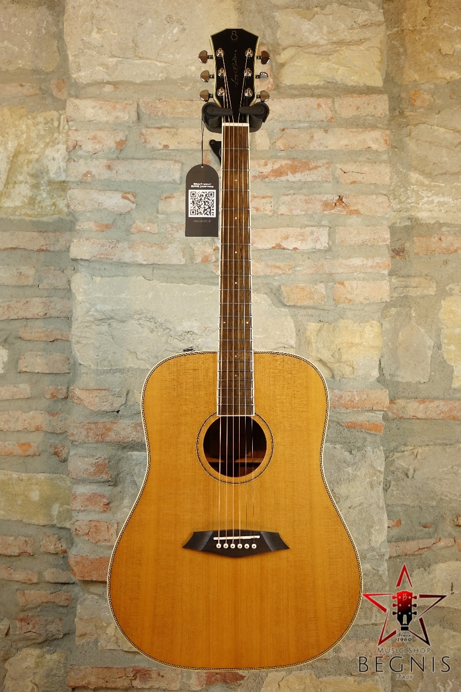 Chitarra Acustica Larry Carlton Dreadnought con Sire SIB Acoustic EQ System. Chitarra Acustica entry level con top in abete massello roasted. Fondo e fasce in Mogano. Ponte e tastiera in Rosewood. Manico in Mogano. Tre monopole per controllo del suono. Foratura laterale minimale. Pickup (under saddle) e microfono interno a condensatore. Possibilità di blend per maggiore dinamica e combinazine di suono. Controlli: Master Volume, Tono, Mic Mix. Meccaniche Sire Acoustic Diecasting Standard.