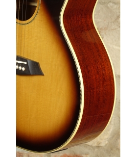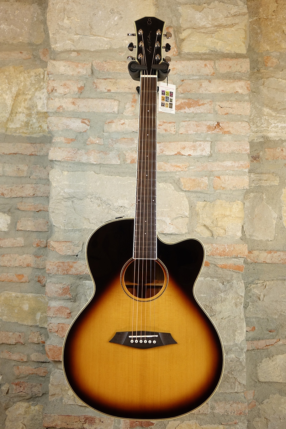 Chitarra Acustica Larry Carlton Grand Auditorium con Sire SIB Acoustic EQ System. Chitarra Acustica entry level con top in abete massello roasted. Fondo e fasce in Mogano. Ponte e tastiera in Rosewood. Manico in Mogano. Tre monopole per controllo del suono. Foratura laterale minimale. Pickup (under saddle) e microfono interno a condensatore. Possibilità di blend per maggiore dinamica e combinazine di suono. Controlli: Master Volume, Tono, Mic Mix. Meccaniche Sire Acoustic Diecasting Standard.