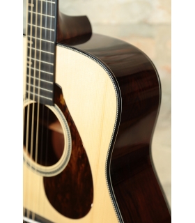 Guatemalan rosewood back and sides provide a beautiful balance of sonic depth and visual elegance - offering rich lows, sparkling highs, and a naturally varied grain pattern that adds character to both tone and appearance.
