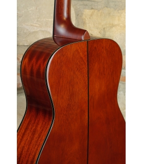 Costruzione completamente in massello con tavola in abete Sitka e fondo e fasce in mogano