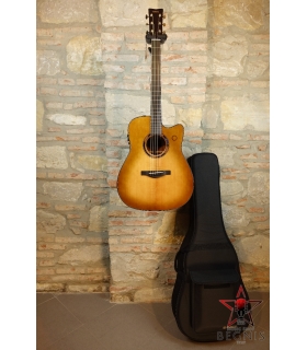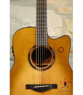 The TAG3 C features a dreadnought-style body, suitable for powerful strokes, with a solid Sitka spruce top and a solid mahogany back and sides. A cutaway design offers easy access to the upper frets near the body for even better playability. Champagne gold hardware and a gorgeous inlay around the sound hole contribute to the guitar's characteristically stylish design.