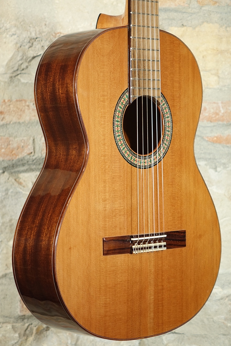 Chitarra classica con top in cedro massello, filetto ai bordi e mosaico alla buca.