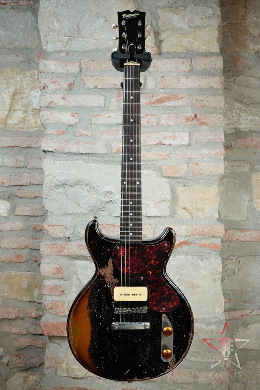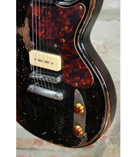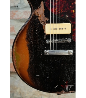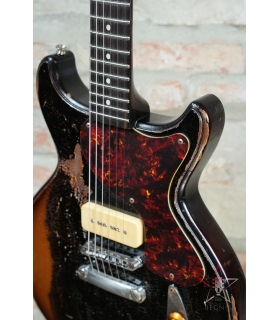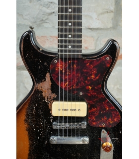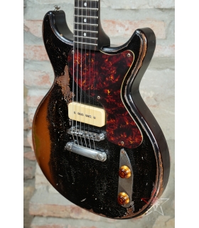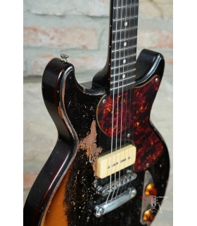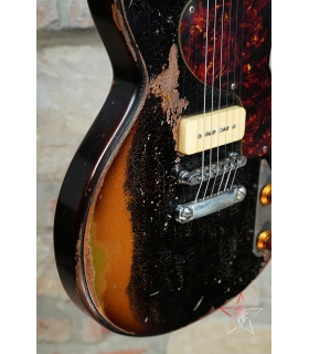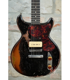CHITARRA ELETTRICA BUTTARINI DC DOUBLE CUT LES PAUL JUNIOR STYLE P90 - HEAVY RELIC BLACK OVER SUNBURST