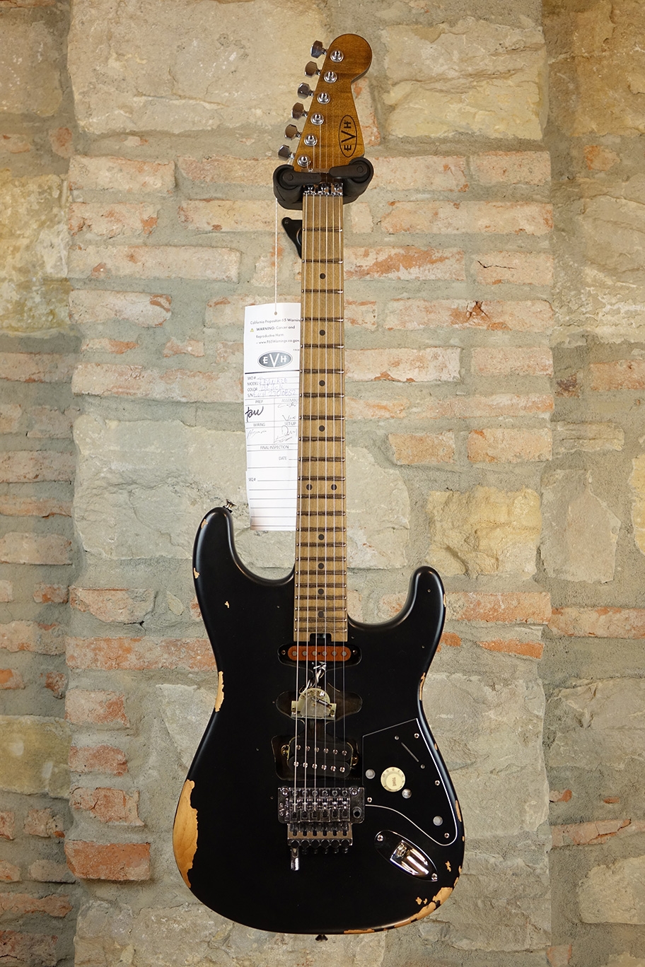 Equipped with a svelte quartersawn maple neck and fast-playing compound-radius relic’d maple fingerboard, this guitar is born to shred.Intentionally positioned against the body, the dive-bomb-only D-Tuna-equipped Floyd Rose lets you mimic Eddie’s signature trem work with ease, along with giving you instant access to Drop D tuning. The EVH Frankenstein Series models are teeming with classic Van Halen vibe, but most importantly, it provides killer tone and lightning-fast playability.