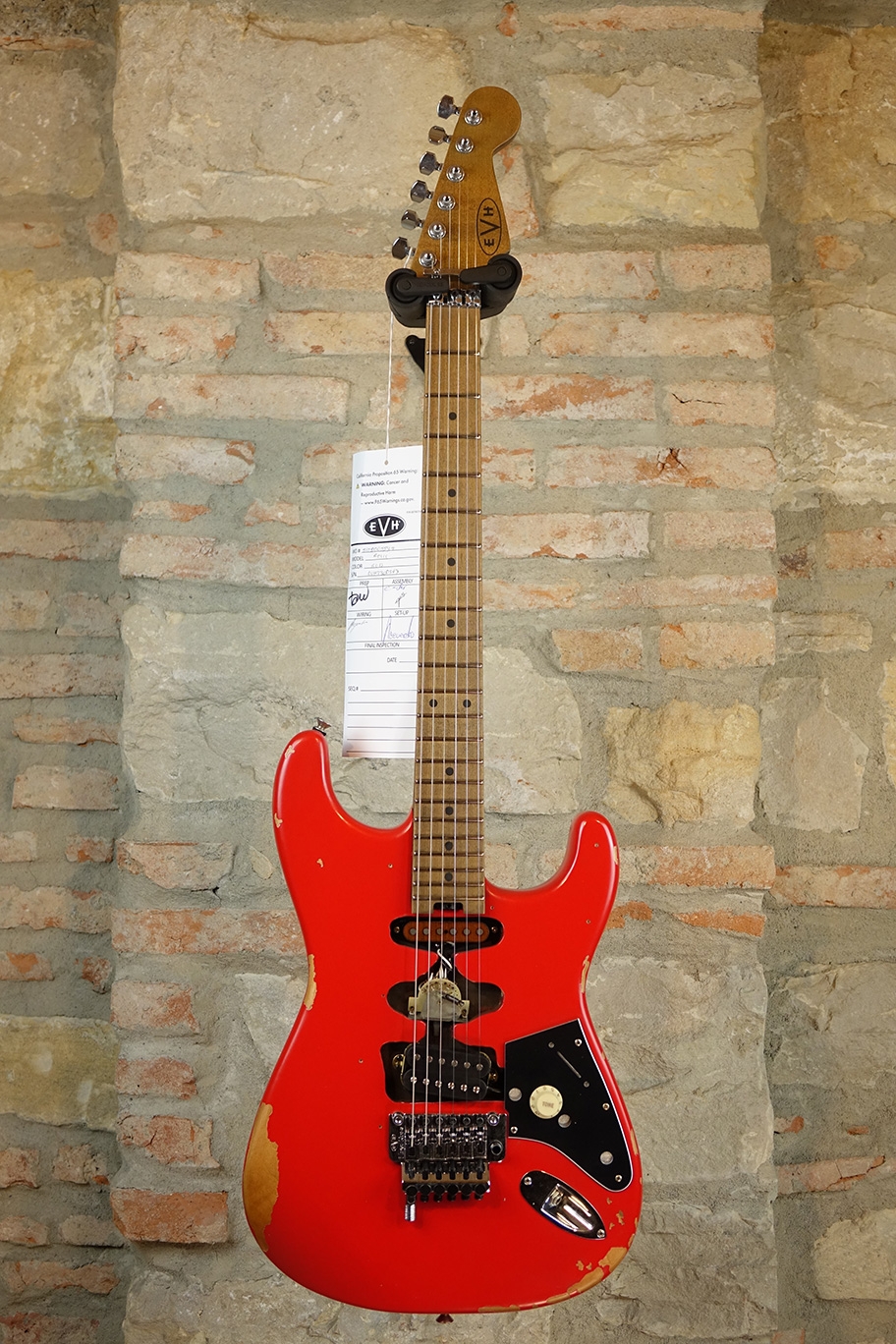 Equipped with a svelte quartersawn maple neck and fast-playing compound-radius relic’d maple fingerboard, this guitar is born to shred.Intentionally positioned against the body, the dive-bomb-only D-Tuna-equipped Floyd Rose lets you mimic Eddie’s signature trem work with ease, along with giving you instant access to Drop D tuning. The EVH Frankenstein Series models are teeming with classic Van Halen vibe, but most importantly, it provides killer tone and lightning-fast playability.