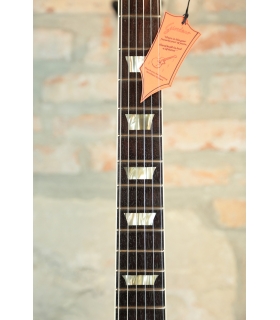 - Indian Rosewood fretboard, 12” radius, Medium Jumbo frets, Celluloid Nitrate Block Inlays and bone nut