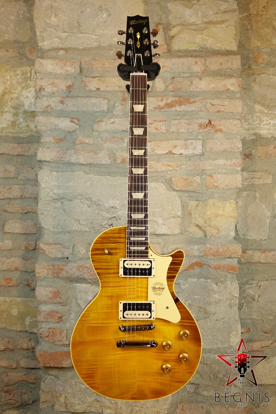 Other notable features include a ‘50s C-shaped neck profile that’s truly comfortable on the hands, and a locking bridge with aluminum stopbar tailpiece for increased sustain and resonance. The locking Tune-O-Matic bridge can be swapped for a Vibramate with Bigsby B7. The headstock has a holly veneer and carries the ‘Heritage’ logo with a Twin Arrow inlay. Proprietary 3x3 tuners come laser-etched with our ‘Heritage’ logo.