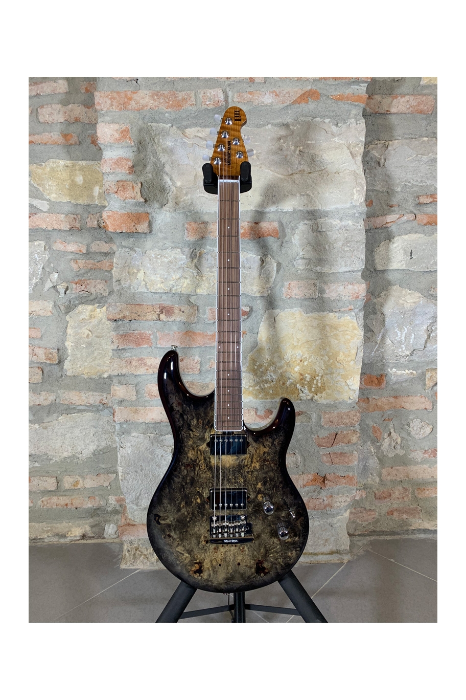 Ernie Ball Music Man LUKE III HH in Black Buckeye Burl e Roasted Flame Maple