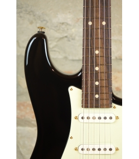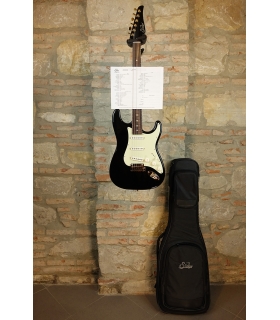 Dotata di tasti medium in acciaio ed un radius compound 9"-12" per un manico comodo e scorrevole, è di serie con tastiera in palissandro indiano, e disponibile con 3 battipenna diversi (AG – Aged Green, BK – Gloss Black e TS – Tortoise), con la bellissima Suhr DLX hard-bag inclusa!