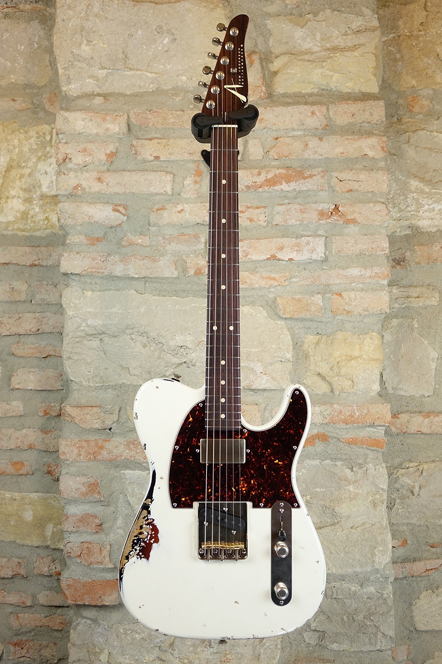 TOM ANDERSON T-Icon In Distress Heavy Aged - Full Rosewood Neck - Olympic White over 3T Burst