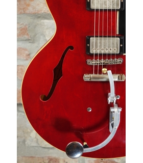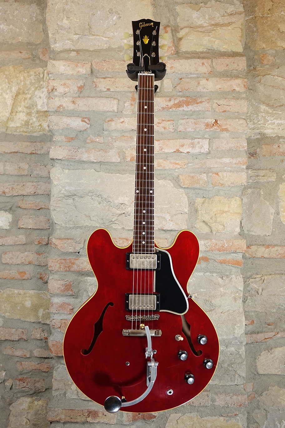 He liked that the cherry-red Gibson ES-335 was both versatile and comfortable. Two years later, he had it outfitted with a unique palm pedal system to bend strings like a steel guitar – its only modification to this day.