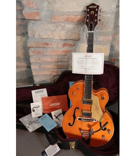 A blast from the classic era of Gretsch’s storied past, the G6120T-59 Vintage Select Edition '59 Chet Atkins® Hollow Body with Bigsby® revisits this historic model. Packed with astounding tone, comfortable feel and elegantly slick style, this instrument is ready to stand by your side onstage or in the studio, bringing out the best in your music and your playing. As refined or raw as you need it to be, this guitar will be an invaluable center-point of your sonic arsenal.