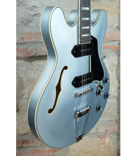 A pair of TV Jones® Classic pickups responds to every pick stroke or strum with refined, articulate tone. Traditional Gretsch controls—including per-pickup volume controls, master volume, a three-way tone switch—allow you to create countless tonal variations for a personalized tone. The new Gretsch “Squeezebox” capacitors deliver silky vintage high end. The standard “U”-shaped maple neck bears a 12”-radius ebony fingerboard with 22 frets and zero-fret for a memorable playing experience that works with any style. The sealed body with simulated F-holes minimizes feedback while providing for authentically vintage tone. A pinned “rocking” bar bridge reacts in concert with the Bigsby B6GVT vibrato tailpiece for stable tuning while the bone nut lets the strings slide freely without binding in the slots.