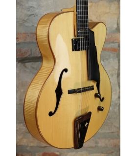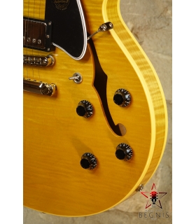 The Heritage Core Collection H-535 semi-hollow electric guitar is built in our factory at 225 Parsons Street, Kalamazoo, and features a laminated premium curly maple top and back. The guitar is finished in a vintage gloss nitrocellulose lacquer, that adds a subtle shine and ages beautifully over time.