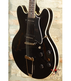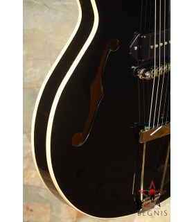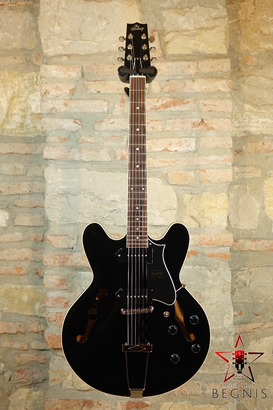 This fully hollow, double cutaway is the lightest guitar in our lineup. Constructed using the same laminate maple rim set as our H-535 model, the open construction and lack of a full center block, allows this guitar to breathe naturally. The addition of a set of Lollar P-90s, provides warm and growling tones that many players seeking a vintage tone desire.