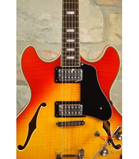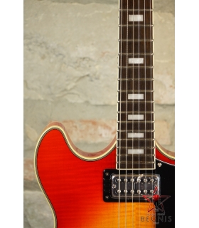 Una configurazione di pickup a doppia bobina progettata per eliminare i ronzii elettronici solitamente associati ai pickup a bobina singola, noti per innescare un'aggiunta significativa all'uscita e al sustain della chitarra. Un ponte configurato con un'unità tremolo per un eccellente trasferimento della risonanza e un'azione tremolo fluida, con il braccio rotondo girevole a 360° per controllare la quantità di vibrazione necessaria. Forma del corpo semi-hollow Sire realizzata per far emergere il DNA musicale di Larry Carlton in questo strumento.