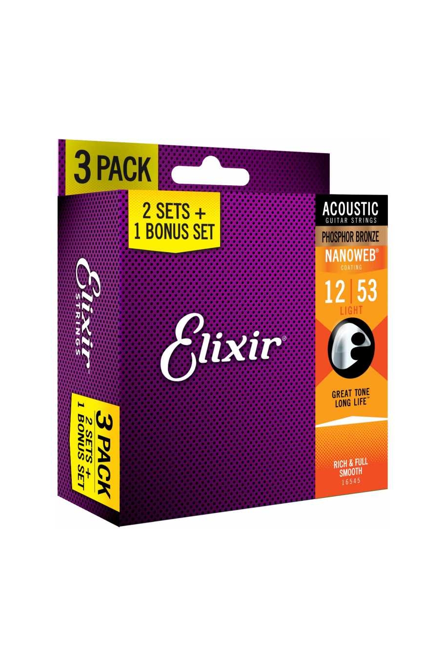 Corde per chitarra acustica con avvolgimento in bronzo al fosforo. Utilizzate per un bilanciamento dinamico con suono ricco e pieno, e squillante brillantezza. Rivestimento NANOWEB™, offre un feeling mórbido. La nostra tecnologia di rivestimento protegge dalla corrosione e dall'accumulo di sporcizia, prolungando la qualità sonora più di ogni altra corda, coated o uncoated, sul mercato. (Elixir Strings player survey). 16052: Scalatura Light: .012 .016 .024 .032 .042 .053