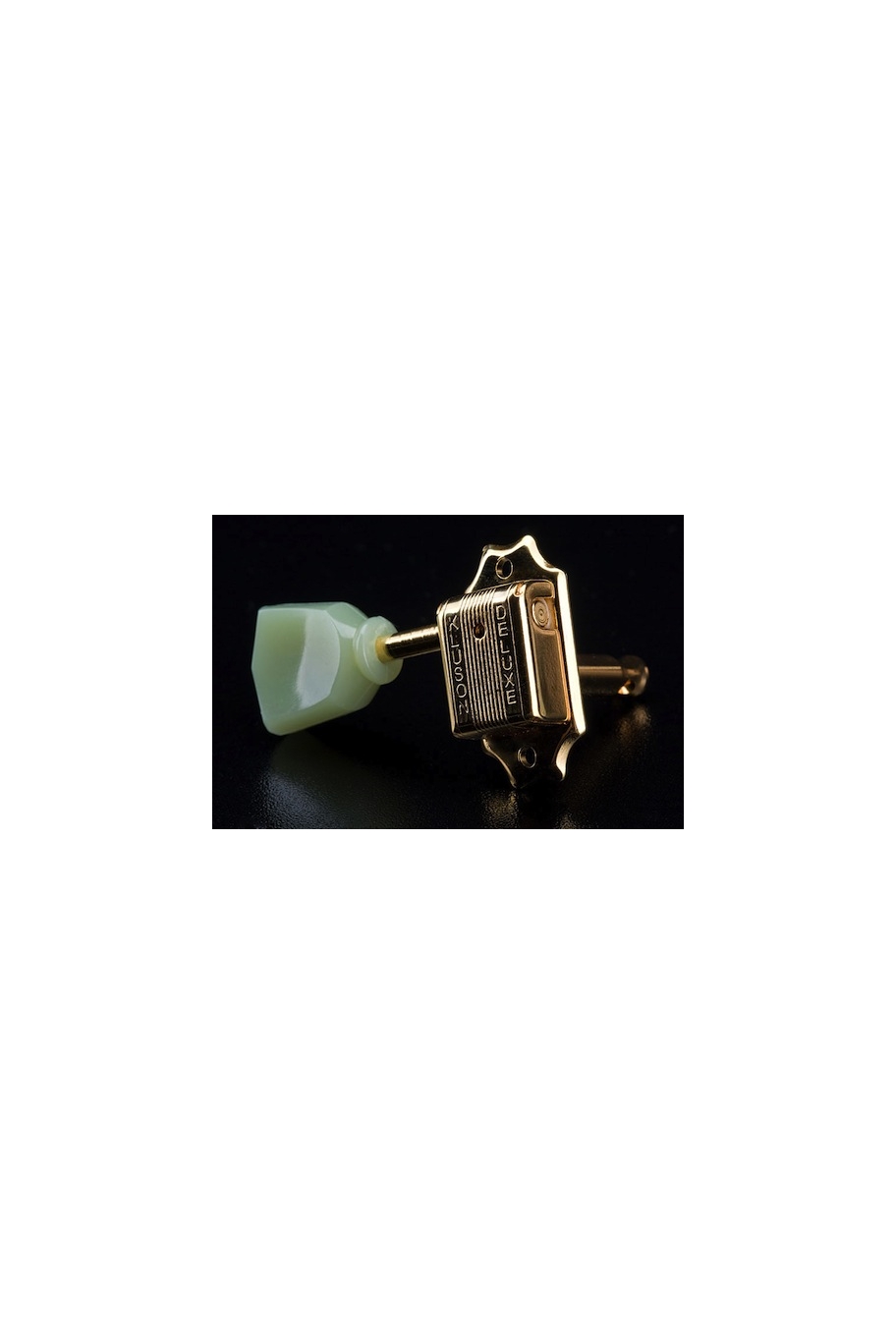 3+3, single, green tulip buttons Reproduction of Kluson tuners beginning of the 60s with „Double Line“ stamp