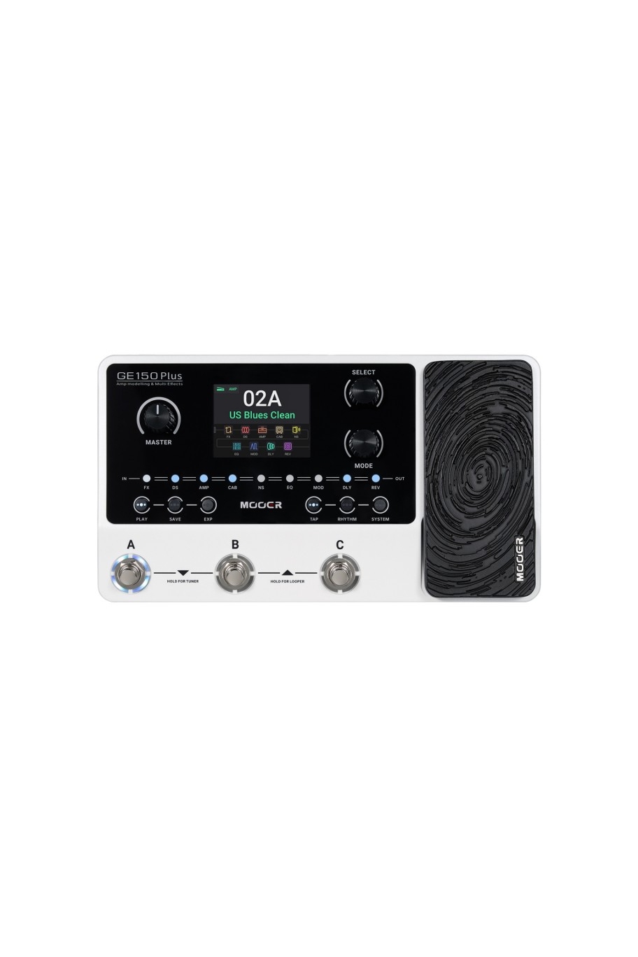 GE150 Plus di MOOER è l'evoluzione del famoso pedale multieffetto GE150. Incorpora 198 patch preimpostate, 55 modelli di preamplificatori realistici con tecnologia di campionamento non lineare intelligente, oltre a una vasta gamma di amplificatori e schermi acustici.