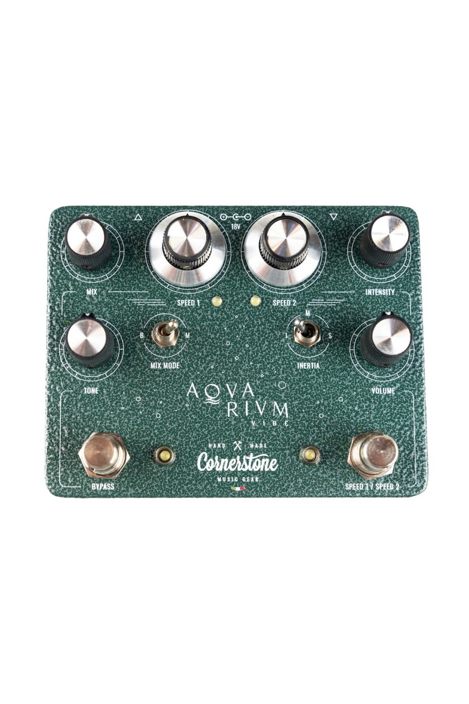 The Aquarium features true 100% analog circuitry, dual speed controls, true bypass switching, board friendly top mounted jacks, and runs on 18V, key to obtaining those classic rich deep ‘Vibe tones from the analog bulb circuitry within.