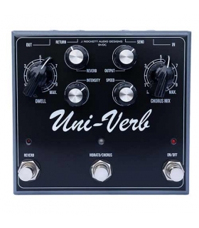 Experience the legendary analog tones of the original Univibe with modern functionalities. The Uni-Verb is a modern twist on the classic Univibe. However, we have added features to enhance the already amazing effect you get. The Uni-Verb recreates the classic sounds you would expect but we have also added a vintage spring tank reverb to make it drip even more. The Uni-Verb runs at 24v just like the original but that is achieved internally. You only need to use a standard negative tip 9v supply making it much more convenient without having to fuss with conversion. The classic Univibe sounded best before drives and other effects, so we built in a loop enabling you to separate the Vibe and Reverb. Both effects can be run individually or together. Some of the features of a classic Univibe left it a little basic such as a lack of control over the turnaround thump of the effect. The Uni-Verb has two separate controls for the chorus section (Chorus Mix and Intensity) allowing complete control over the intensity and turnaround thump of the chorus. The intensity control also controls the vibrato, however, the Chorus/Mix control does not. Both sections blend seamlessly into the output control which allows for slightly more volume than a vintage Univibe and both effects will vibe/chorus faster and slower than the original. Modern iterations of the vintage Univibe tend to be too intense and less musical, we feel we have achieved the perfect balance just like the original and added Reverb on top for more atmosphere.