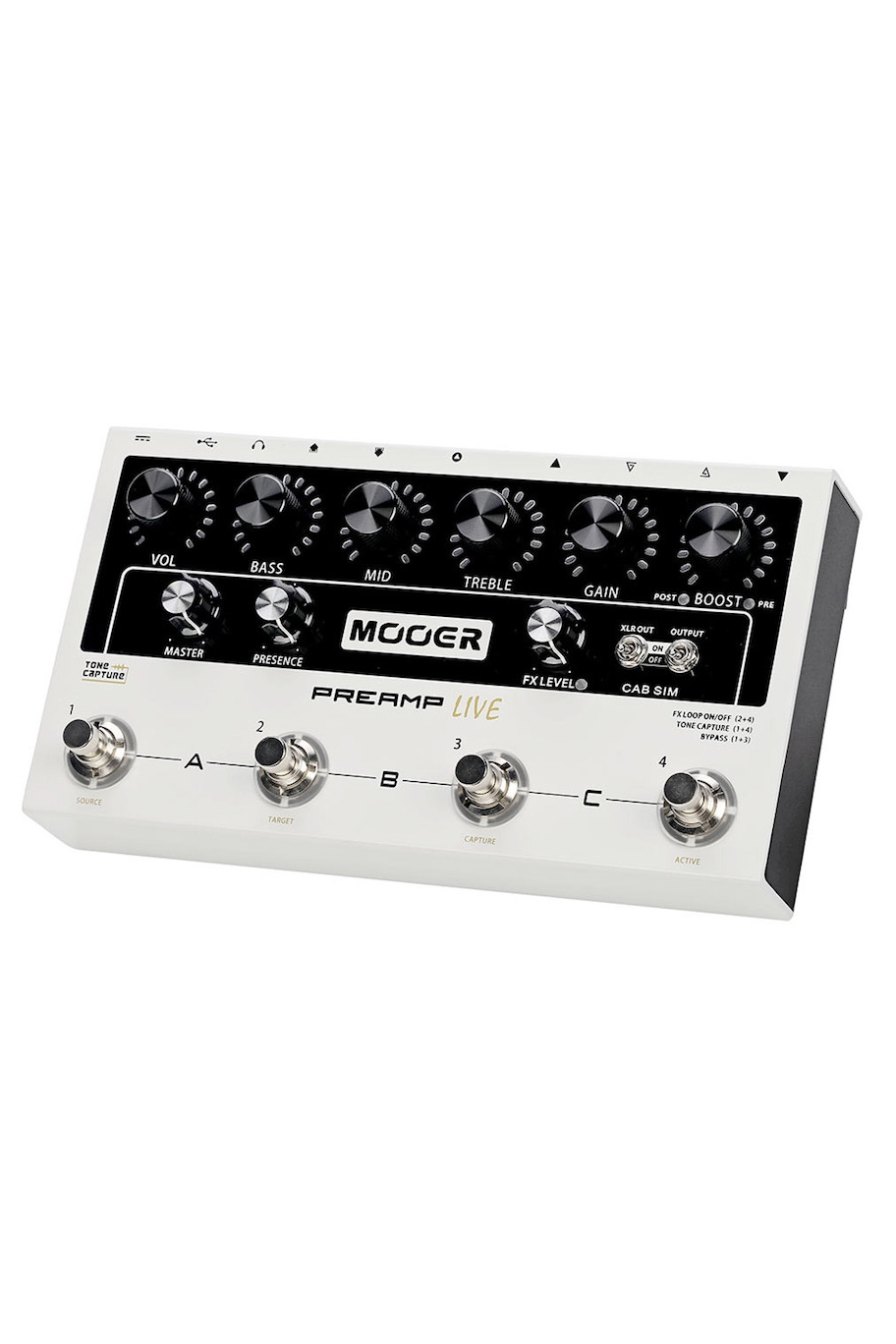 * Contiene 12 canali di preamplificazione indipendenti divisi in 3 banchi di 4 preset, richiamabili via 4 footswitch frontali. I controlli di editing sono immediati ed intuitivi come in un normale amplificatore.