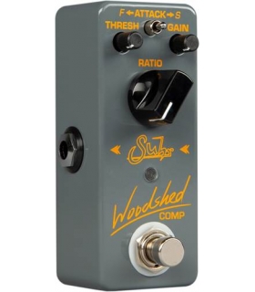 The Suhr Andy Wood Woodshed Comp is set with a fast-attack speed and balanced compression that allows the guitar to sing, punch, and have that sustain. Andy wanted the control’s sweet spot to be in a specific place. In turn, you get a very sensitive range of the controls with a wide sweep, expanded ratio, threshold and gain range. This allows the threshold to work on lower signals, such as single coils. With the Woodshed Comp, a little goes a long way when dialing in your compression.