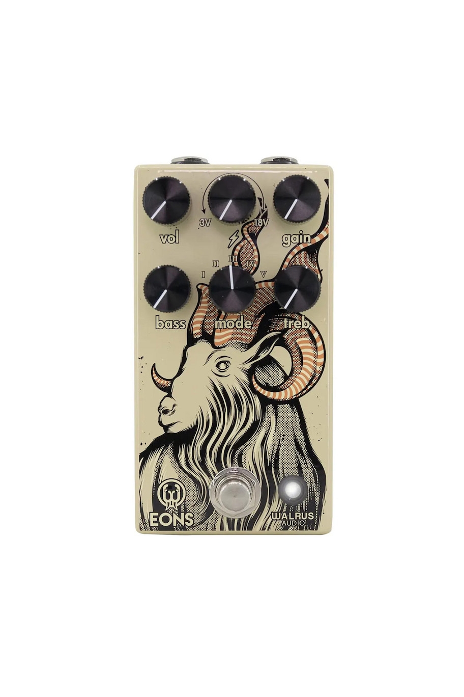 Controls: Vol, Dry, Gain, Bass, Treble, Mode (5-position-switch)