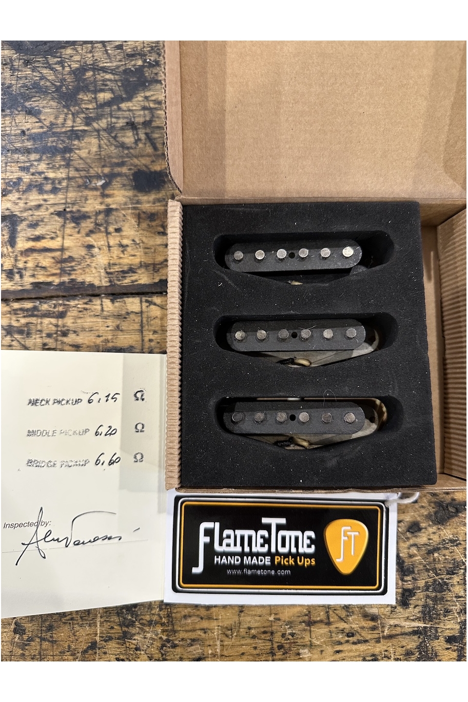 Montati per pochissimo tempo su copia Strat che è poi stata venduta, quindi ripristinata con set originale.
