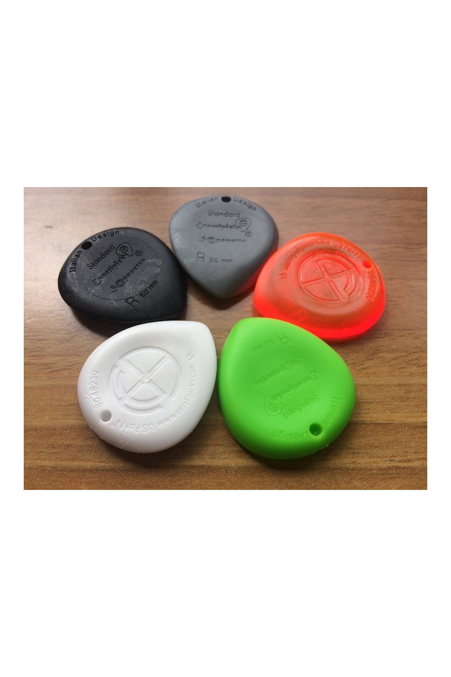 Si tratta del primo plettro di Essetipicks® realizzato per mezzo di stampo a pressofusione. Mantiene le principali caratteristiche che hanno reso famosa la serie Speedy degli esemplari realizzati a mano, quali il doppio angolo di spoglia brevettato e la doppia conca grip. Realizzato nei due formati Standard e Mini con l’opzione Left & Right rispettivamente per utilizzatori mancini o destri. Stampato in vari materiali di qualità ma con caratteristiche differenti quali Kevlar, Nylon, Teflon, Polipropilene, Carbonio, etc.