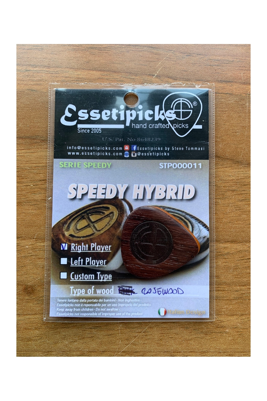 Ecco un esempio di quando un plettro supera se stesso. L’innovazione nell’innovazione. Il Modello Essetipicks® Speedy Hybrid è rivoluzionario. Oltre a tutte le caratteristiche geniali del modello Speedy di base , vi è in più il procedimento costruttivo in tre strati (brevettato). Questa speciale particolarità consente di avere un tocco morbido ma con una coda potente e ricca di armoniche e lento decadimento della nota prodotta. Consigliato a chi desidera un tocco morbido quasi “felpato” poco scandito ma con potenza , brillantezza e ricchezza di armoniche.