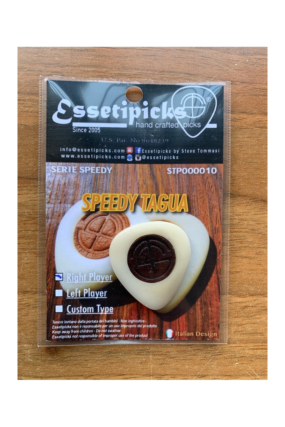 Plettri in tiratura limitata realizzati con la noce di Tagua (Avorio Vegetale) del sudamerica, esteriormente simili agli Speedy Plexi. Utilizzo su chitarra elettrica e acustica, grande maneggevolezza e suono. In versione per chitarristi destri o mancini.