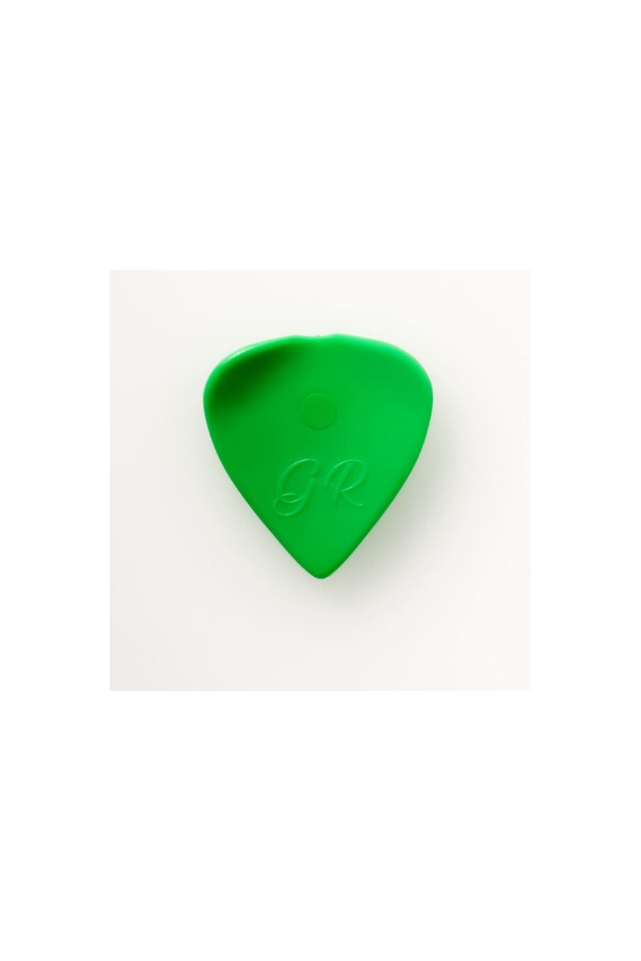 GR in Verde Brillante: versatilità è la parola d’ordine di questo plettro, progettato assieme al chitarrista Gianni Rojatti e suo modello Signature. L’idea alla base della creazione del GR era ampliare lo spettro d’azione del classico plettro da Shred, rigido, di dimensioni ridotte e punta affilata. Mantenendo comunque salde queste caratteristiche ne è stata ampliata la malleabilità: le dimensioni sono state sensibilmente ampliate rendendolo efficace e performante anche nelle ritmiche più sfacciate: rock, punk, reggae…