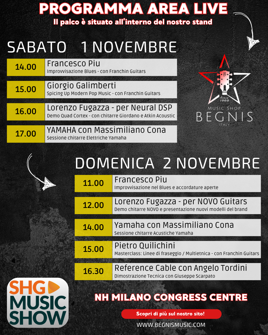 L'1 e 2 novembre 2025, BegnisMusic sarà presente alla fiera SHG di Milano con uno stand di oltre 200 metri quadrati, progettato per offrirti un'esperienza totalmente immersiva.
