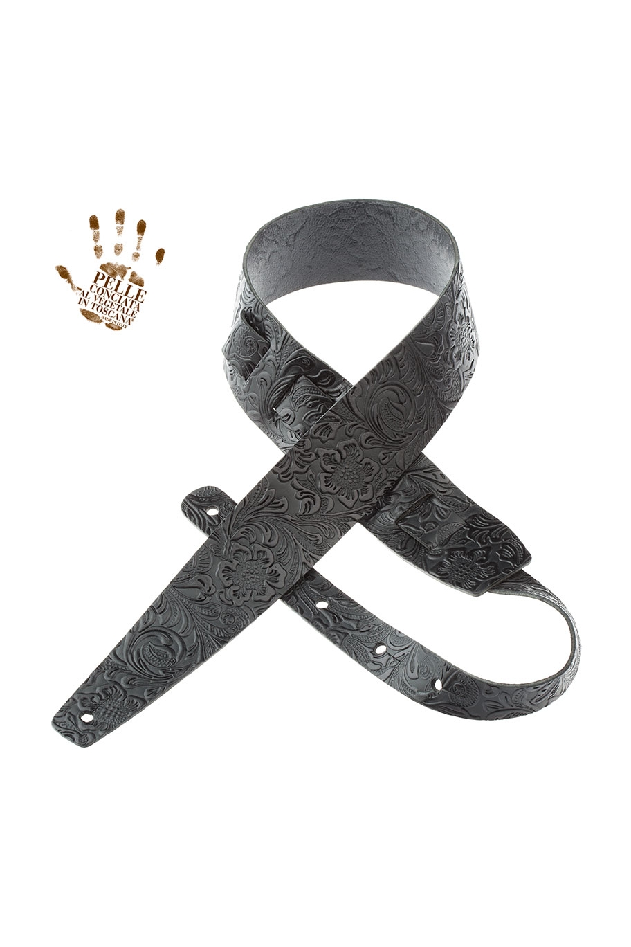 Tracolla per chitarra e basso in pelle Holes HC Embossed Flores Nero 6 cm